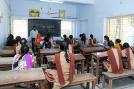 We have well equipped teaching staff room. with facilities like steel Wooden Tables, chairs, plastic chairs, wall clock, ceiling fan, tube light, wall peace, slogan board, leg wiper, dustbin, individual drawers & Cupboards etc. |