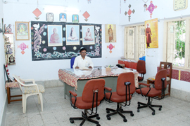 We are having all major facilities like revolving chair, wooden chairs, executive wooden table, computer wooden table, steel store wells, telephone, ceiling fan, tube lights, photographs, slogan board, wall clock, flower port, partition with glass, dust bin, high quality big glass, cushion, wall peace, at Principal's Office.